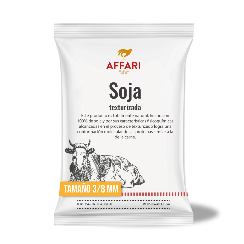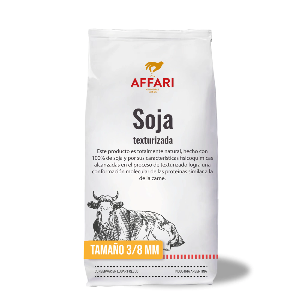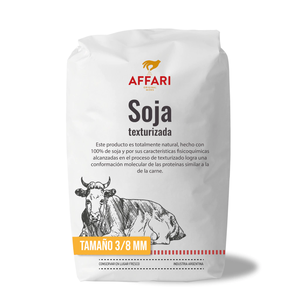 Este producto es totalmente natural, hecho con 100 % de soja y por sus características fisicoquímicas alcanzadas en el proceso de texturizado logra una conformación molecular de las proteínas similar a la de la carne, con textura fibrosa y haciéndola ideal como sustituto cárnico.
